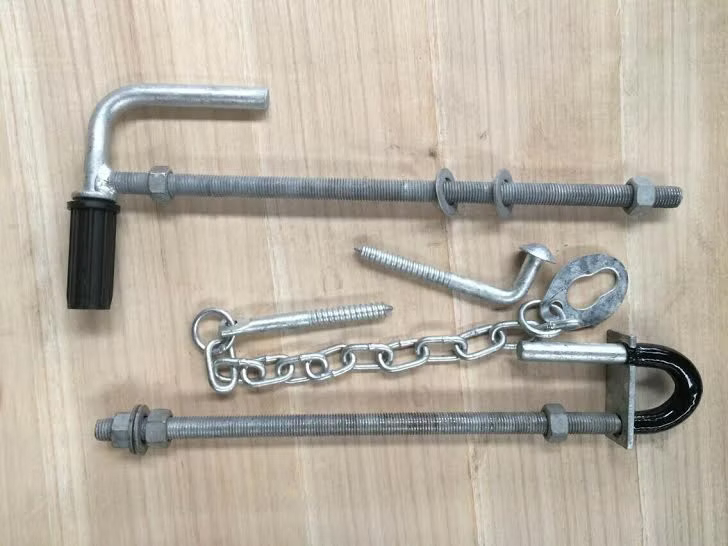 Þær eru stillanlegar, boraðar í gegnum tréstaur.